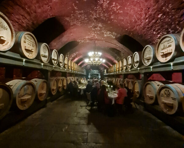 Besonderer Abend im schönsten und größten Weinkeller – dem staatlichen Hofkeller Fine Dining, fränkischer Wein und ein buntes Abendprogramm mit musikalischer Begleitung